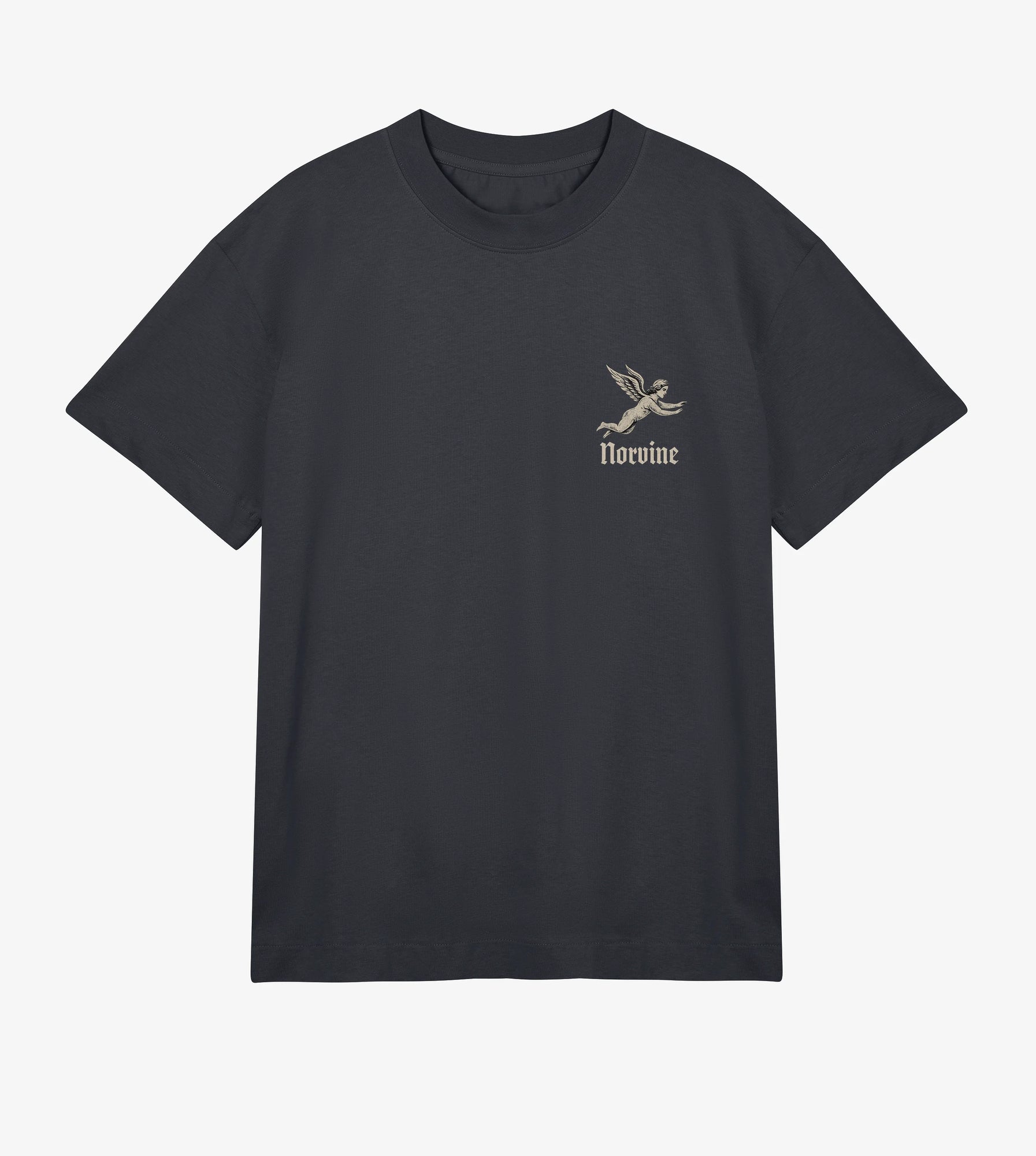 Ce T-shirt Norvine pour homme est fabriqué en 100 % coton biologique lourd, jersey simple, avec une coupe boxy et un col côtelé haut assurant forme et maintien. Il comporte des coutures à une aiguille aux extrémités des manches et à l’ourlet allongé. Les autres détails de construction incluent des coutures d’épaule rabattues avec bande de propreté et des coutures enchaînées/superposées sur la couture.
